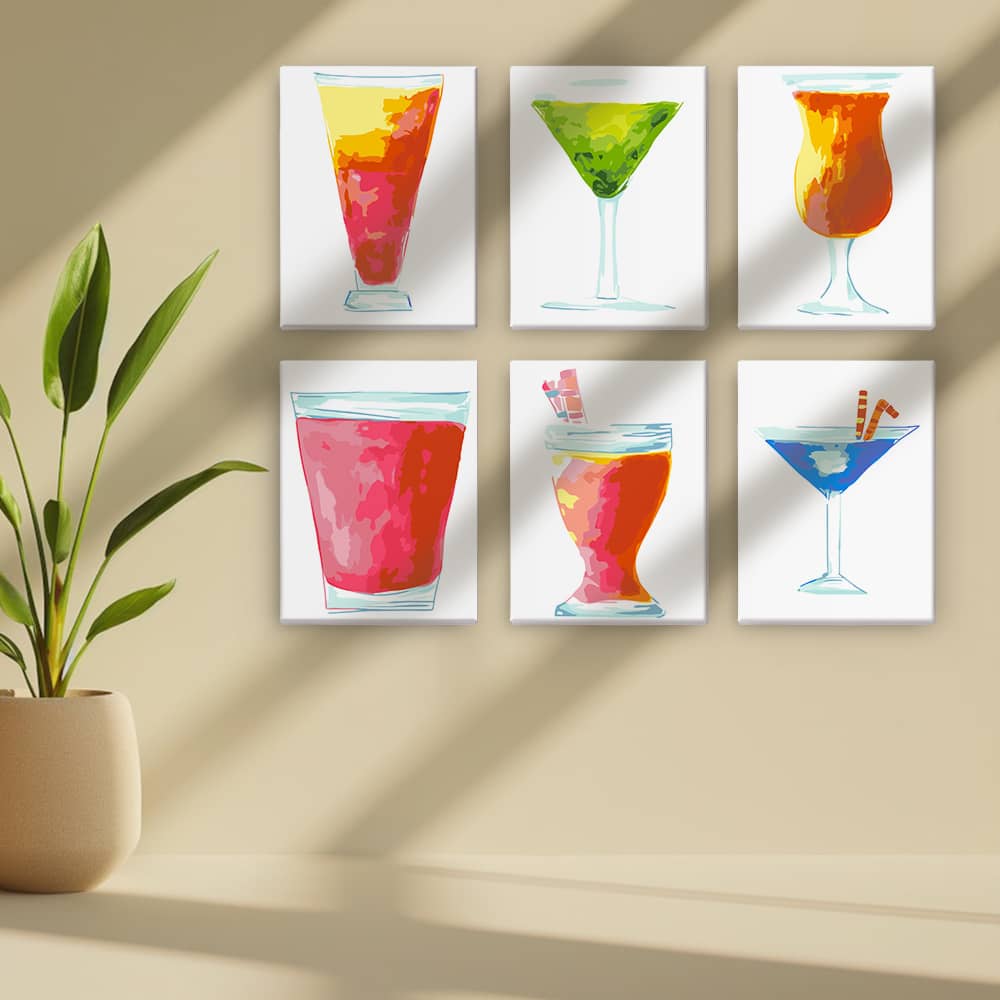 Abstrakte Cocktails 6er SET - Mini Malen nach Zahlen