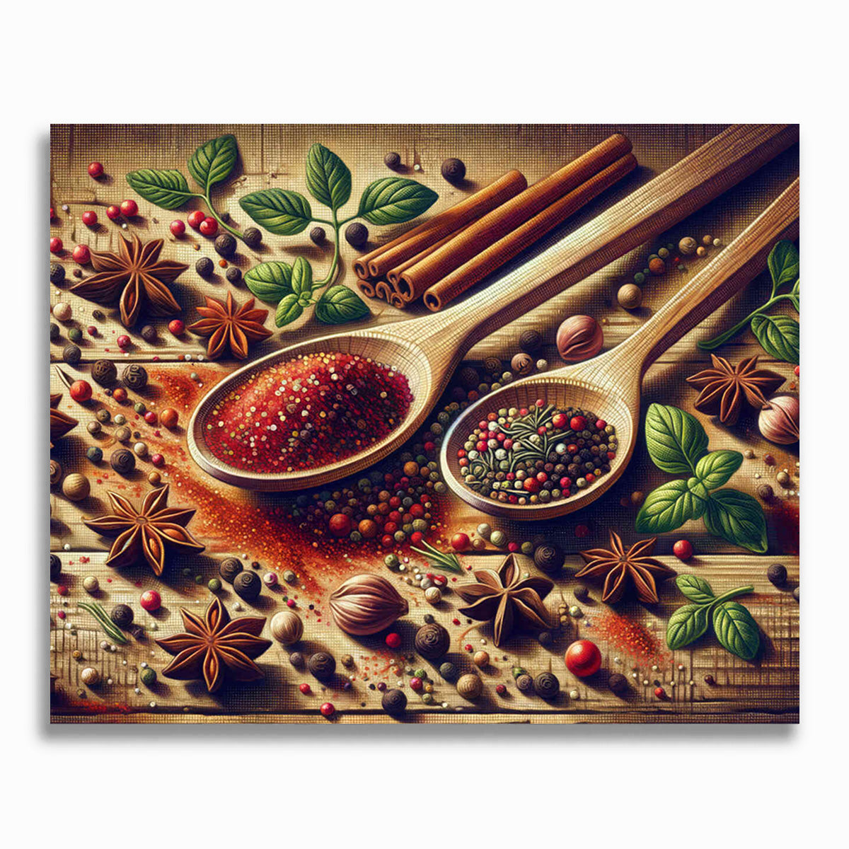 Malen nach Zahlen - Kochlöffel mit Gewürzen der Küche