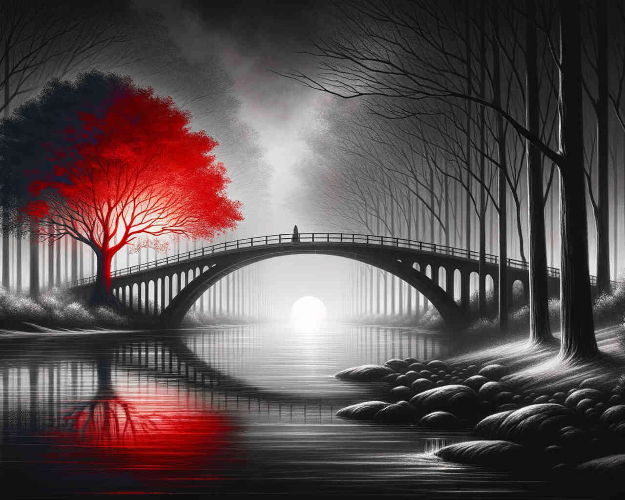 Malen nach Zahlen - Brücke in Schwarz und Weiß