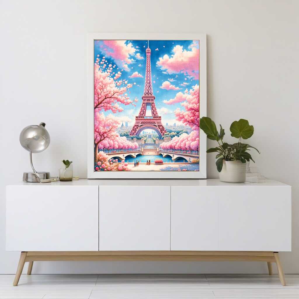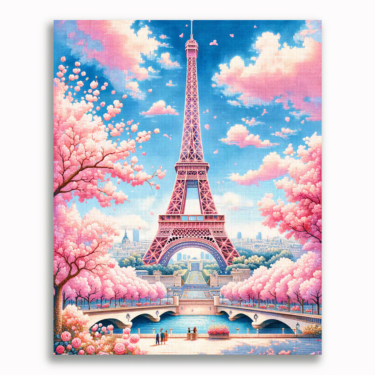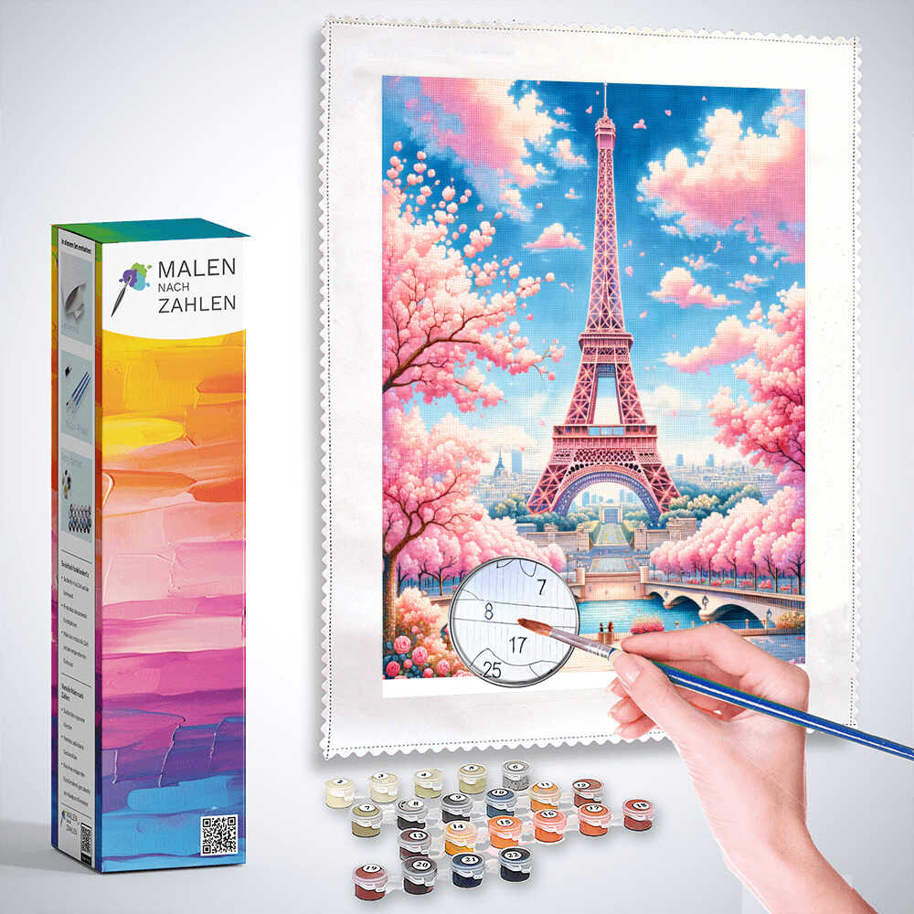 Malen nach Zahlen - Eiffelturm in Rosenblütenpracht