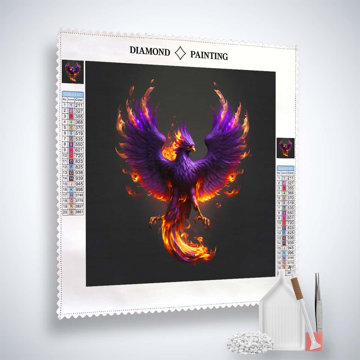 Lila Phoenix Diamond Painting Kit Art with Burning Flames - Sparkling DIY Craft