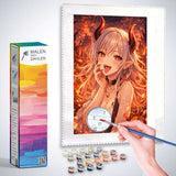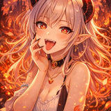 In „Flammenherz – Dämonische Verlockung“ verschmilzt Fantasy mit Romantik in leuchtenden Feuertönen. Eine faszinierende Dämonin mit funkelnden, roten Augen, filigranen Hörnern und verführerischem Lächeln ist von Flammen und Licht umgeben. Ihr lebendiges, silbernes Haar tanzt im Glanz. Im modernen Anime-Stil gehalten, entfacht das Kunstwerk ein Gefühl von verwegener Leidenschaft und magischer Anziehungskraft, das den Betrachter nicht mehr loslässt.