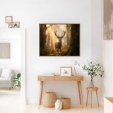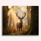 Im verträumten Morgengrauen durchdringen goldene Sonnenstrahlen den mystischen Wald und hüllen einen stolzen Hirsch in sanftes Licht. Moosbedeckte Bäume, nebelverhangene Luft und warme, erdige Farbtöne schaffen eine magische Atmosphäre. Das Werk im realistischen Stil fängt das Thema „Wildnis und Erhabenheit“ ein und ruft Ehrfurcht und Staunen hervor. Ein Kunstwerk voller stiller Kraft und wilder Schönheit, das die Seele berührt.