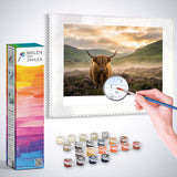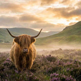 In „Majestät des Morgens“ taucht ein mächtiges Hochlandrind aus dem mystischen Nebel einer schottischen Landschaft auf. Sanfte Grüntöne verschmelzen mit dem zarten Lavendel der Heide, während das goldene Licht der Morgendämmerung Hoffnung und Ruhe versprüht. Dieses realistische Naturkunstwerk im romantischen Stil berührt das Herz – es löst Ehrfurcht vor der wilden Schönheit und die Sehnsucht nach Freiheit aus.