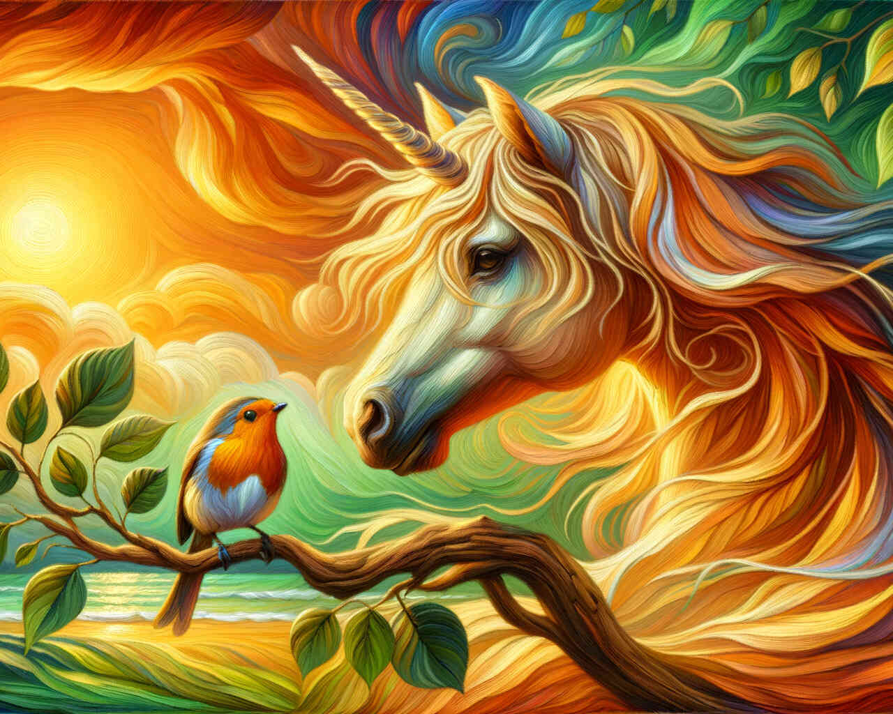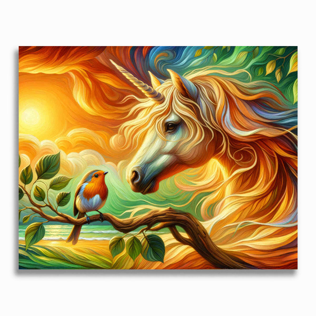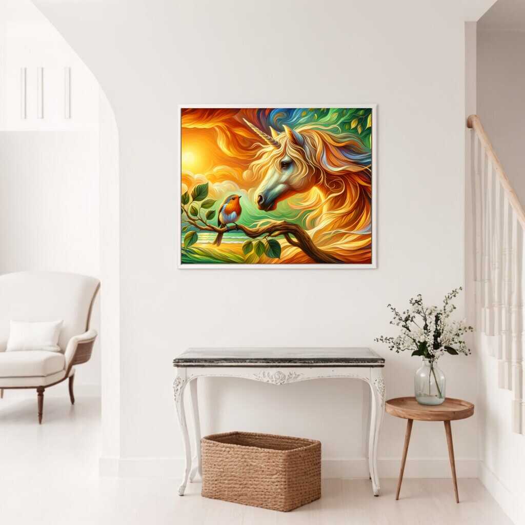 Malen nach Zahlen - Einhorn mit Rotkehlchen