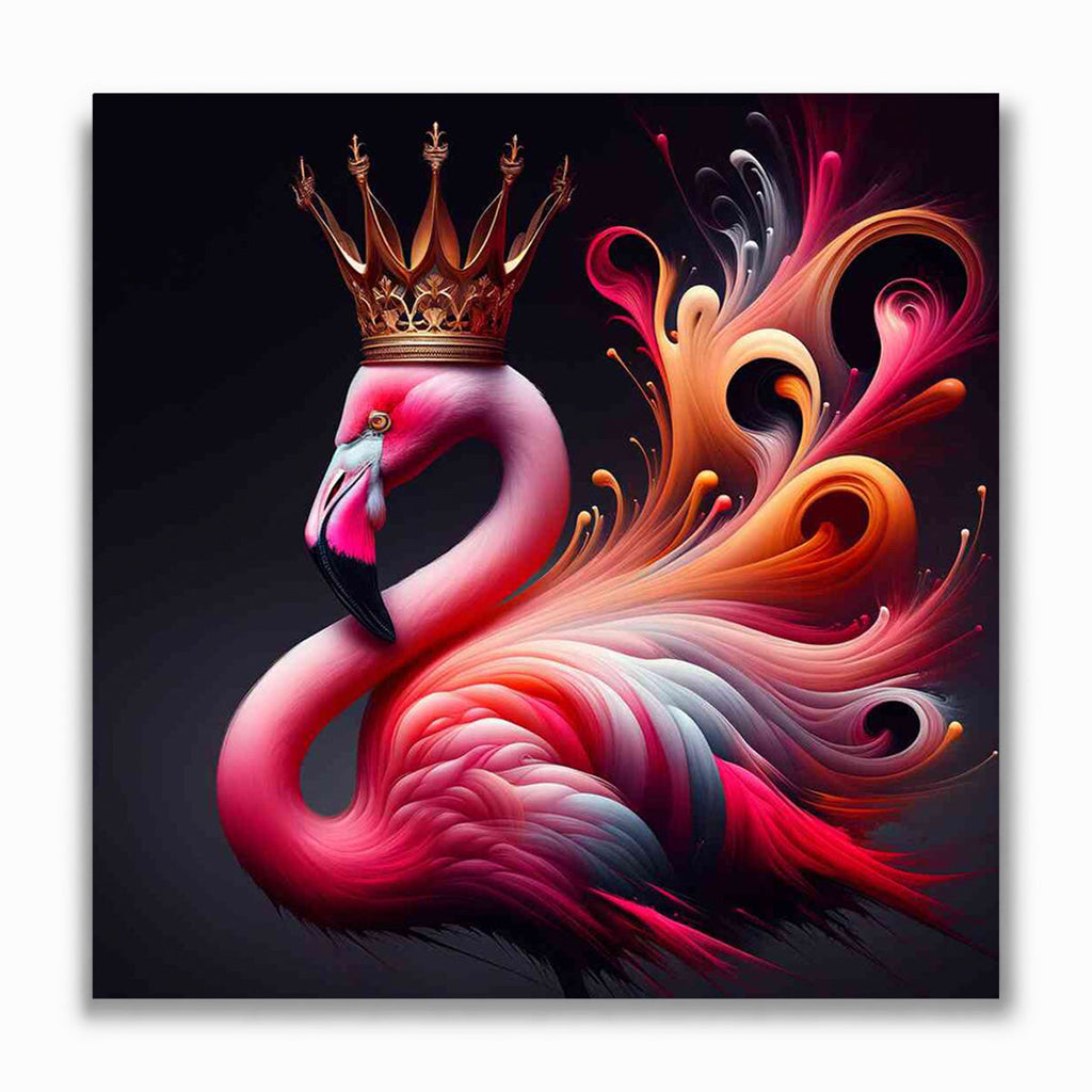 Royal flamingo painting with colorful swirls and a crown, Malen nach Zahlen art kit.