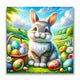 Easter Wonderland paint-by-numbers kit featuring a cute bunny with colorful Easter eggs in a vibrant spring meadow.