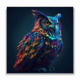 Vibrant painting of a proud owl at night, titled