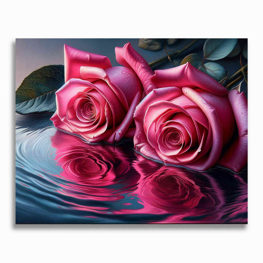 Malen nach Zahlen - Zwei pinke Rosen Wasser