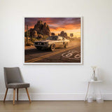 Dieses moderne Meisterwerk fängt die nostalgische Sehnsucht der legendären Route 66 ein. Ein klassischer Mustang fährt durch eine goldene Wüstenlandschaft, eingerahmt von Kakteen und zerklüfteten Felsen im warmen Licht der Abendsonne. Das Werk kombiniert realistische Detailverliebtheit mit expressivem Farbspiel und vermittelt Abenteuerlust, Freiheit und endlosen Sommer – ein Bild, das Herzklopfen und Fernweh zugleich weckt.